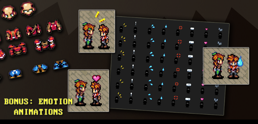 As for expressions: because it'd just be too many animations to do custom emotes for all the possible combinations, I included a series of emote-like popups in the Elements Core Set that you can use for this purpose: